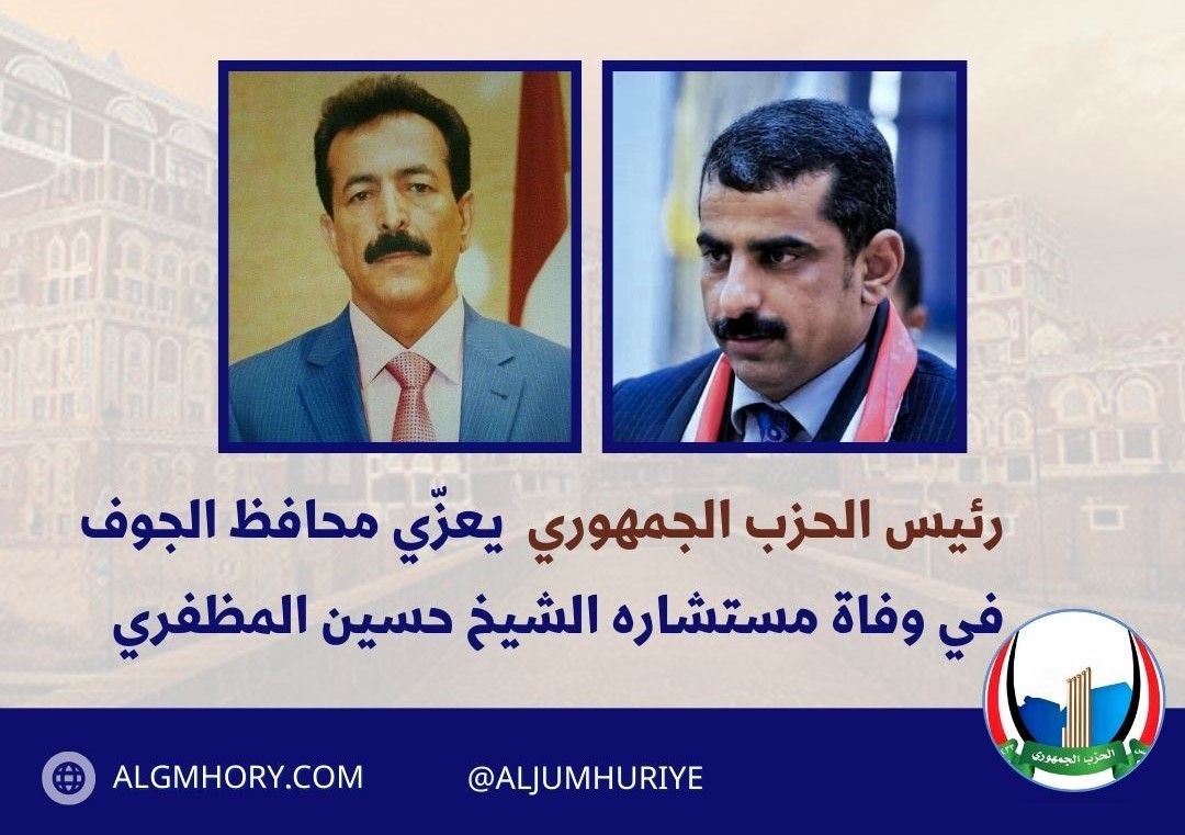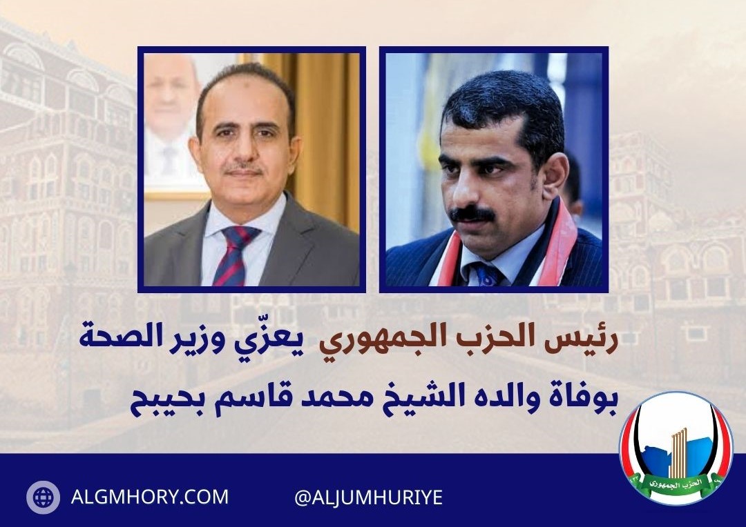16 يناير 2026: عبّر الحزب الجمهوري اليمني عن مباركته للقرارات السيادية الأخيرة التي اتخذها فخامة رئيس مجلس القيادة الرئاسي الدكتور رشاد العليمي، وعلى رأسها تعيين الفريق الركن محمود الصبيحي والدكتور…