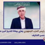 بعث رئيس الحزب الجمهوري، وكيل وزارة الزراعة والري والثروة السمكية، المهندس محمد جزيلان، برقية عزاء ومواساة في وفاة الشيخ أمين صالح حسن الشايف، رحمه الله رحمة واسعة.